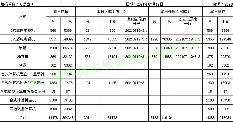 2021.07.19回收拆解統(tǒng)計(jì)表