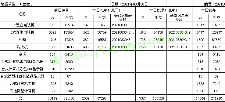 2021.08.31回收拆解統(tǒng)計(jì)表