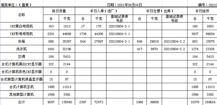 2021.09.04回收拆解統(tǒng)計(jì)表