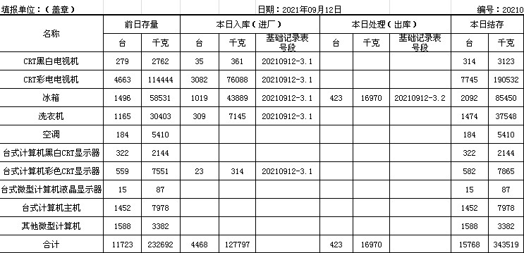 2021.09.12回收拆解統(tǒng)計(jì)表