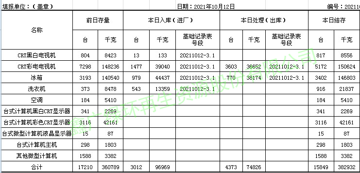 2021.10.12回收拆解統(tǒng)計(jì)表