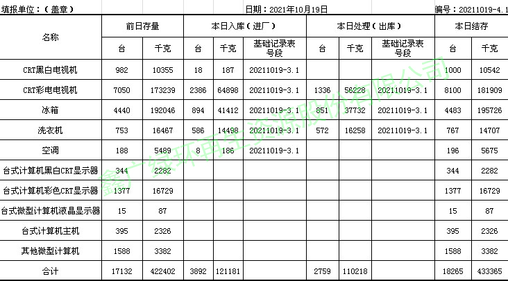2021.10.19回收拆解統(tǒng)計(jì)表