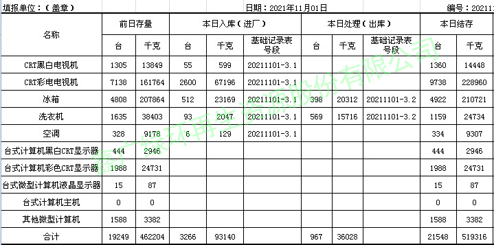 2021.11.01回收拆解統(tǒng)計(jì)表