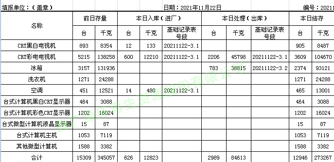 2021.11.22回收拆解統(tǒng)計(jì)表