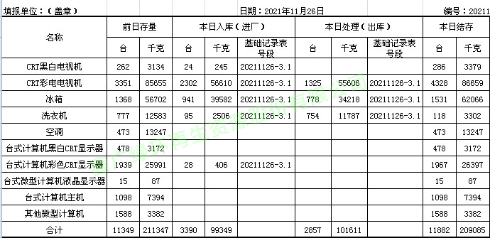 2021.11.26回收拆解統(tǒng)計(jì)表
