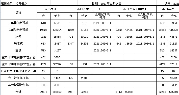 2021.12.04回收拆解統(tǒng)計(jì)表