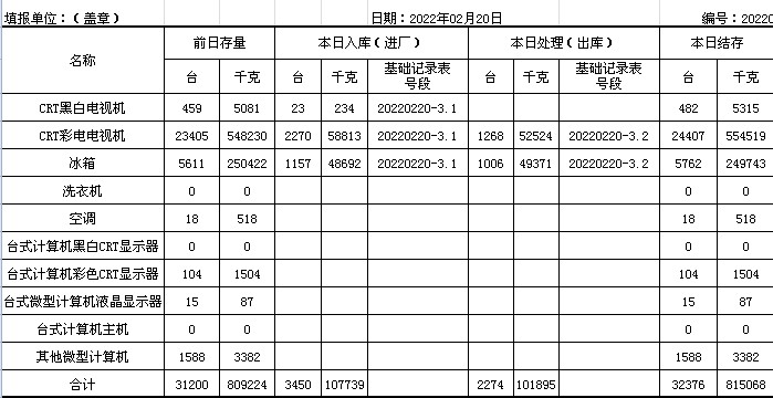 2022.02.20回收拆解統(tǒng)計(jì)表