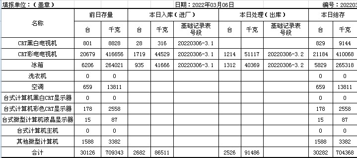 2022.03.06回收拆解統(tǒng)計(jì)表