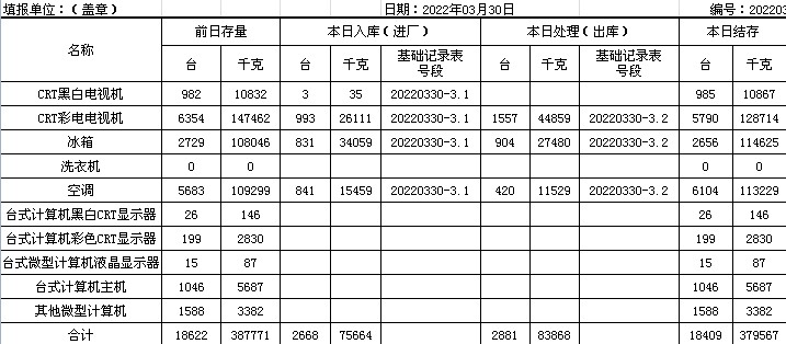2022.03.30回收拆解統(tǒng)計(jì)表