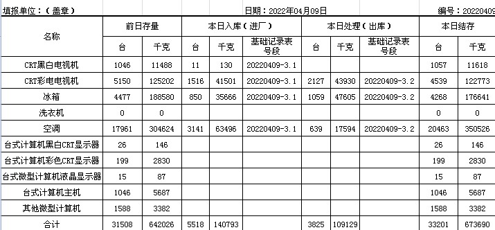 2022.04.09回收拆解統(tǒng)計表
