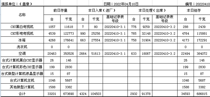 2022.04.11回收拆解統(tǒng)計(jì)表