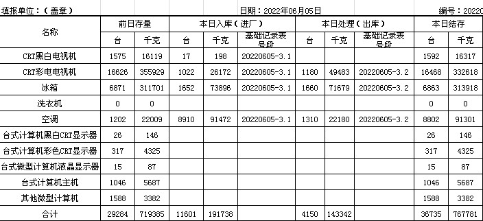 2022.06.05回收拆解統(tǒng)計(jì)表