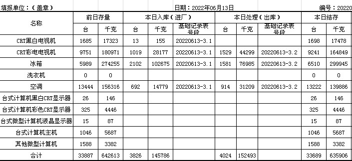 2022.06.13回收拆解統(tǒng)計表