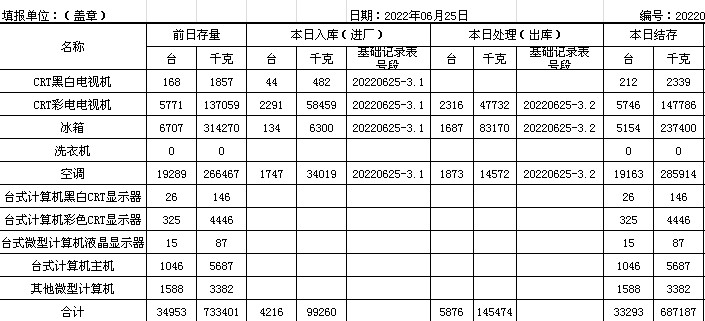2022.06.25回收拆解統(tǒng)計(jì)表
