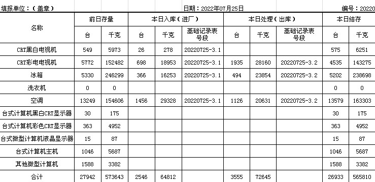 2022.07.25回收拆解統(tǒng)計(jì)表