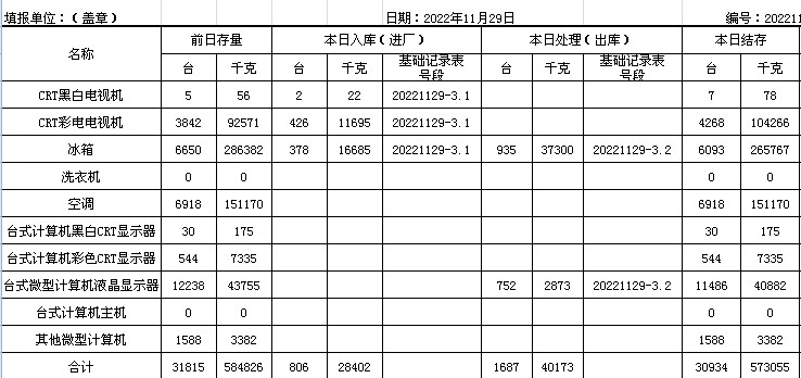 2022.11.29回收拆解統(tǒng)計(jì)表