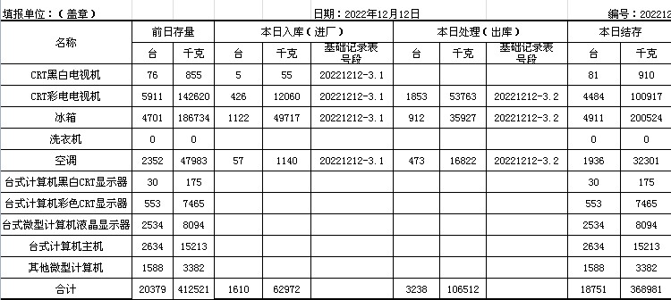 2022.12.12回收拆解統(tǒng)計(jì)表