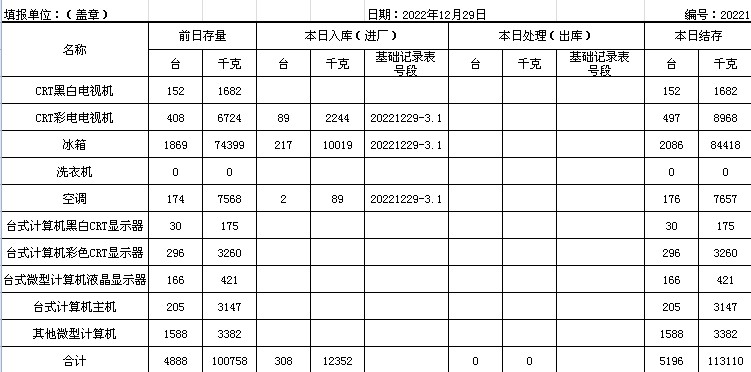 2022.12.29回收拆解統(tǒng)計(jì)表