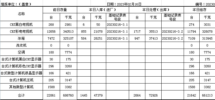 2023.02.16回收拆解統(tǒng)計(jì)表