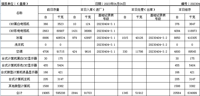 2023.04.04回收拆解統(tǒng)計(jì)表