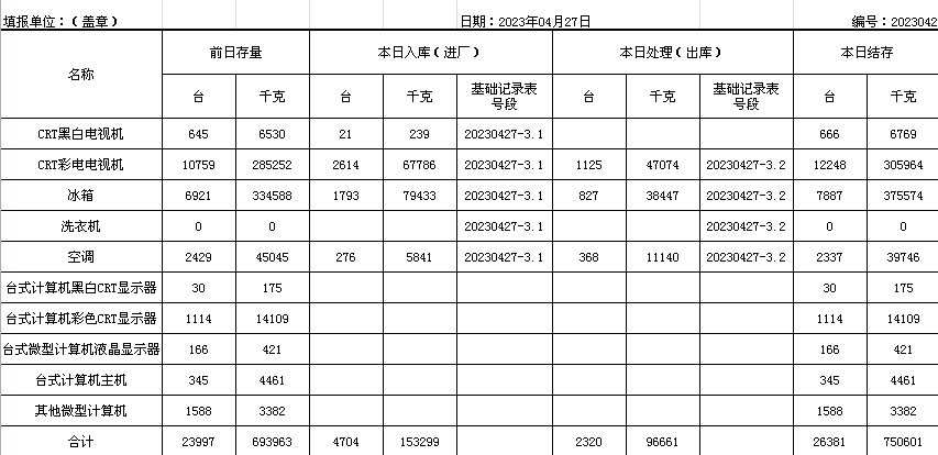 2023.04.26回收拆解統(tǒng)計(jì)表
