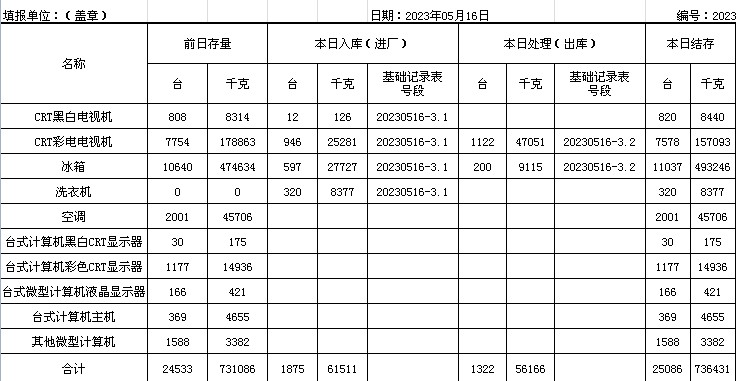 2023.05.16回收拆解統(tǒng)計(jì)表