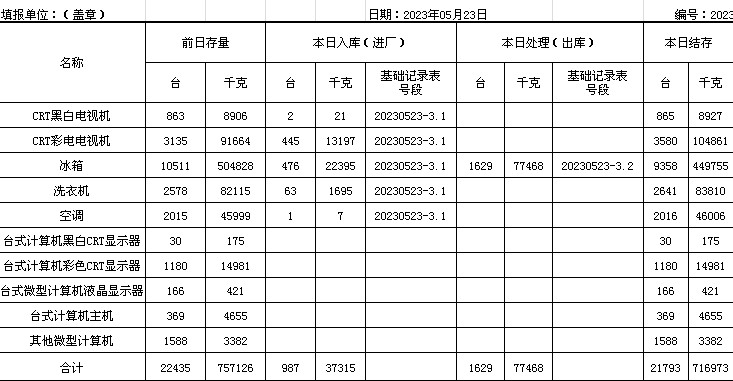 2023.05.23回收拆解統(tǒng)計(jì)表