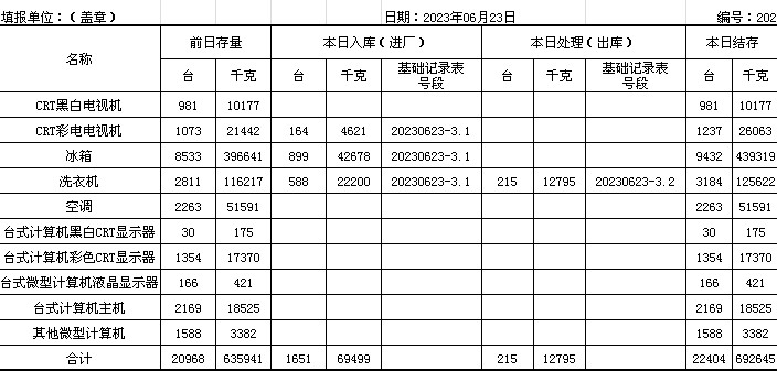 2023.06.23回收拆解統(tǒng)計(jì)表