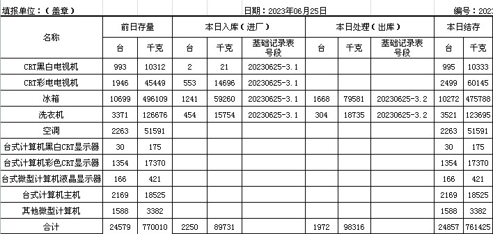 2023.06.25回收拆解統(tǒng)計(jì)表