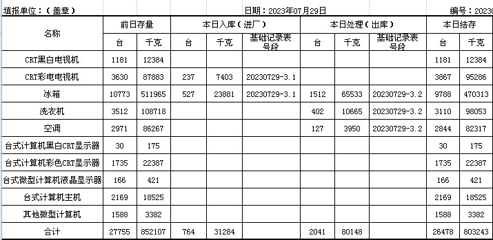 2023.07.29回收拆解統(tǒng)計(jì)表