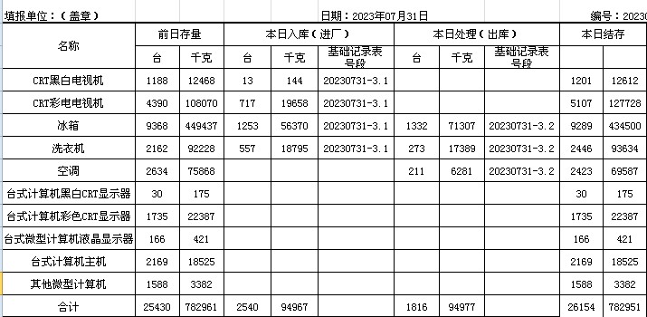 2023.07.31回收拆解統計表
