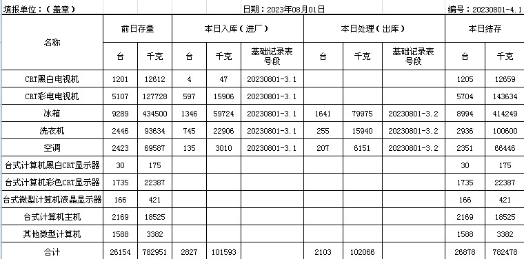 2023.08.01回收拆解統(tǒng)計表