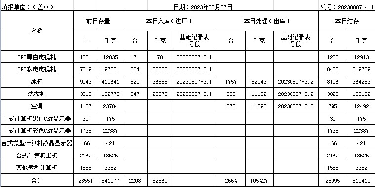 2023.08.07回收拆解統(tǒng)計(jì)表