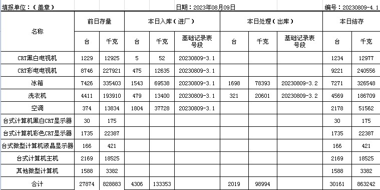 2023.08.09回收拆解統(tǒng)計(jì)表