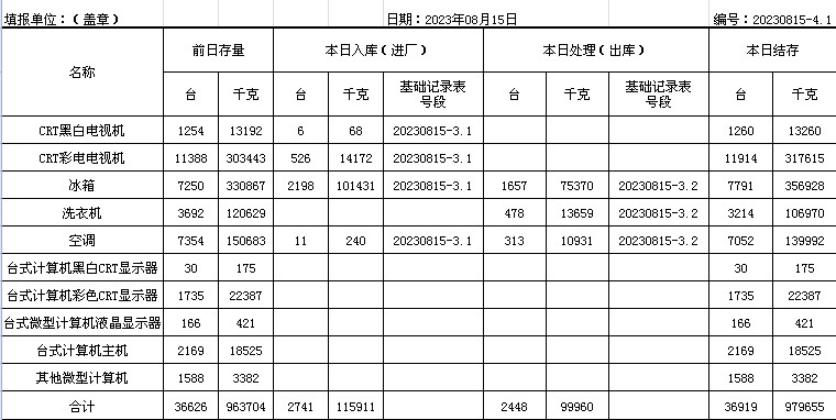 2023.08.15回收拆解統(tǒng)計(jì)表