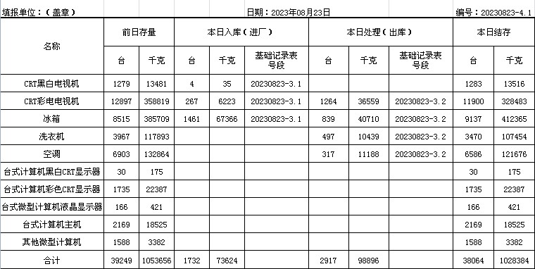 2023.08.23回收拆解統(tǒng)計(jì)表
