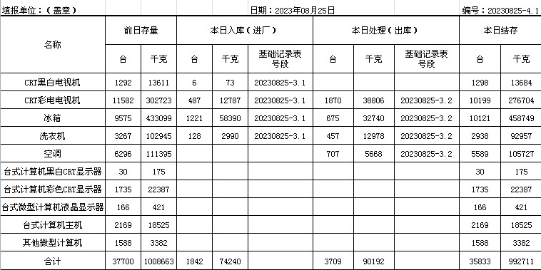 2023.08.25回收拆解統(tǒng)計(jì)表