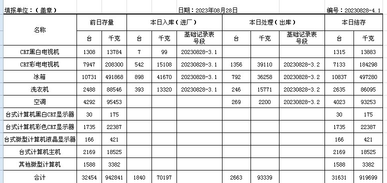 2023.08.28回收拆解統(tǒng)計(jì)表