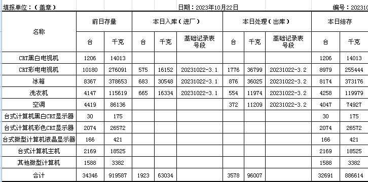 2023.10.22回收拆解統(tǒng)計(jì)表