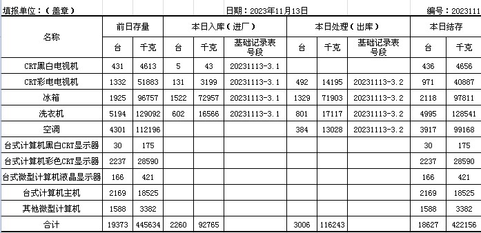 2023.11.13回收拆解統計表