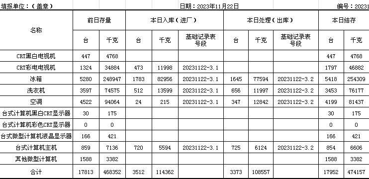 2023.11.21回收拆解統計表