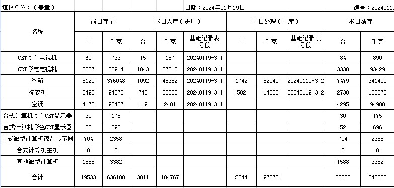 2024.01.19回收拆解統(tǒng)計(jì)表