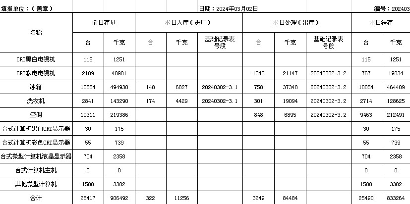 2024.03.02回收拆解統(tǒng)計(jì)表