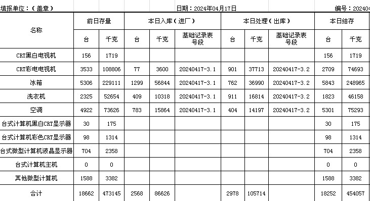 2024.04.17回收拆解統(tǒng)計(jì)表