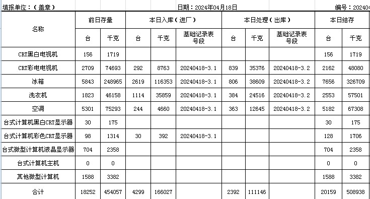 2024.04.18回收拆解統(tǒng)計表
