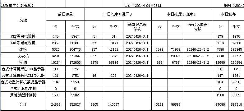 2024.04.26回收拆解統(tǒng)計(jì)表