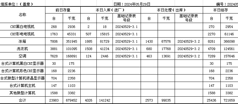 2024.05.29回收拆解統(tǒng)計(jì)表