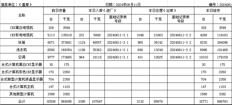 2024.06.11回收拆解統(tǒng)計(jì)表