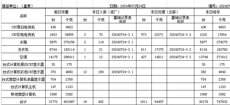 2024.07.24回收拆解統(tǒng)計(jì)表