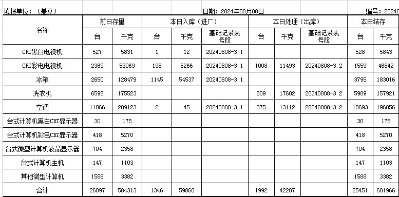2024.08.09回收拆解統(tǒng)計(jì)表